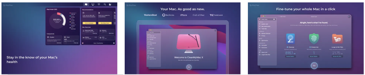 Хотя CleanMyMac X не считается официальным приложением Apple, это одна из самых востребованных платформ для удаления данных на макбуках. Она имеет 4,5-звёздочный рейтинг, составленный из примерно 7000 оценок пользователей. Возможно использование программы бесплатно, но с ограничениями. Все же её функции будут доступны за $89.95. Также есть различные пакеты на основе подписки от $39.95 в год.