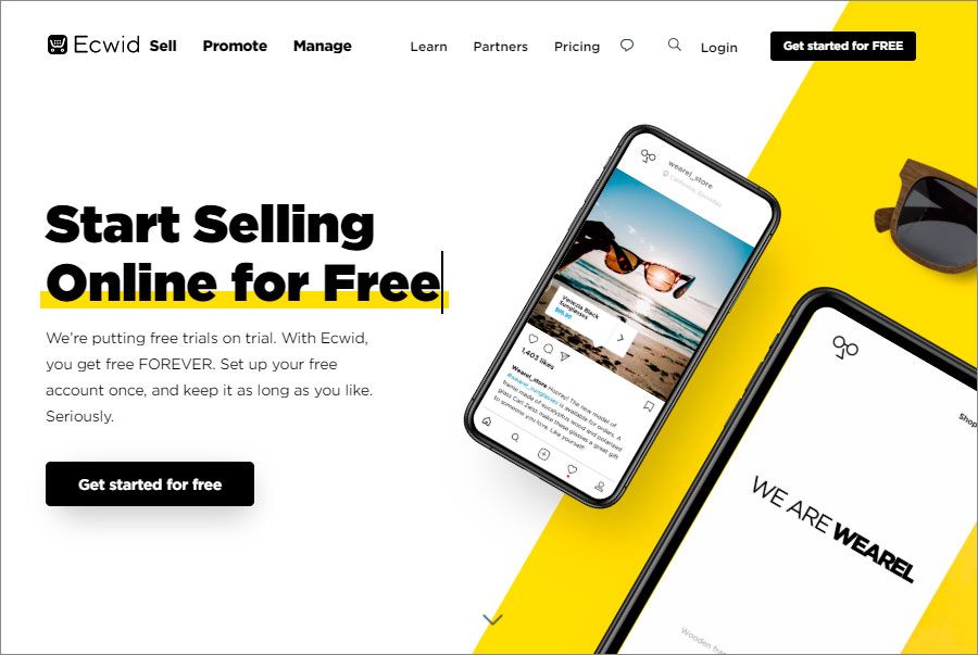 Ecwid, работающий по технологии Ajax, создали в 2009 году. Это бюджетная платформа, которая разработана специально для начинающих бизнесменов, потому что работать с ней можно бесплатно и не придется платить комиссионные с продаж. Пройдя регистрацию, здесь можно создать себе одностраничник со встроенным магазином. На официальном сайте вы можете выбрать подходящий шаблон.