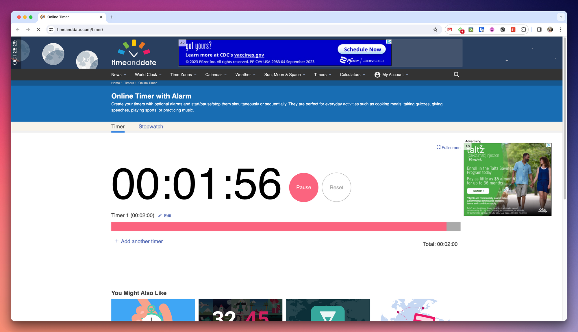Сервис с кучей различных инструментов. Например, вы можете узнать, сколько сейчас времени в другом городе или стране, какая там погода, во сколько восход и закат солнца и т.д. Есть отдельный раздел с таймерами (есть секундомер и таймер обратного отсчёта).