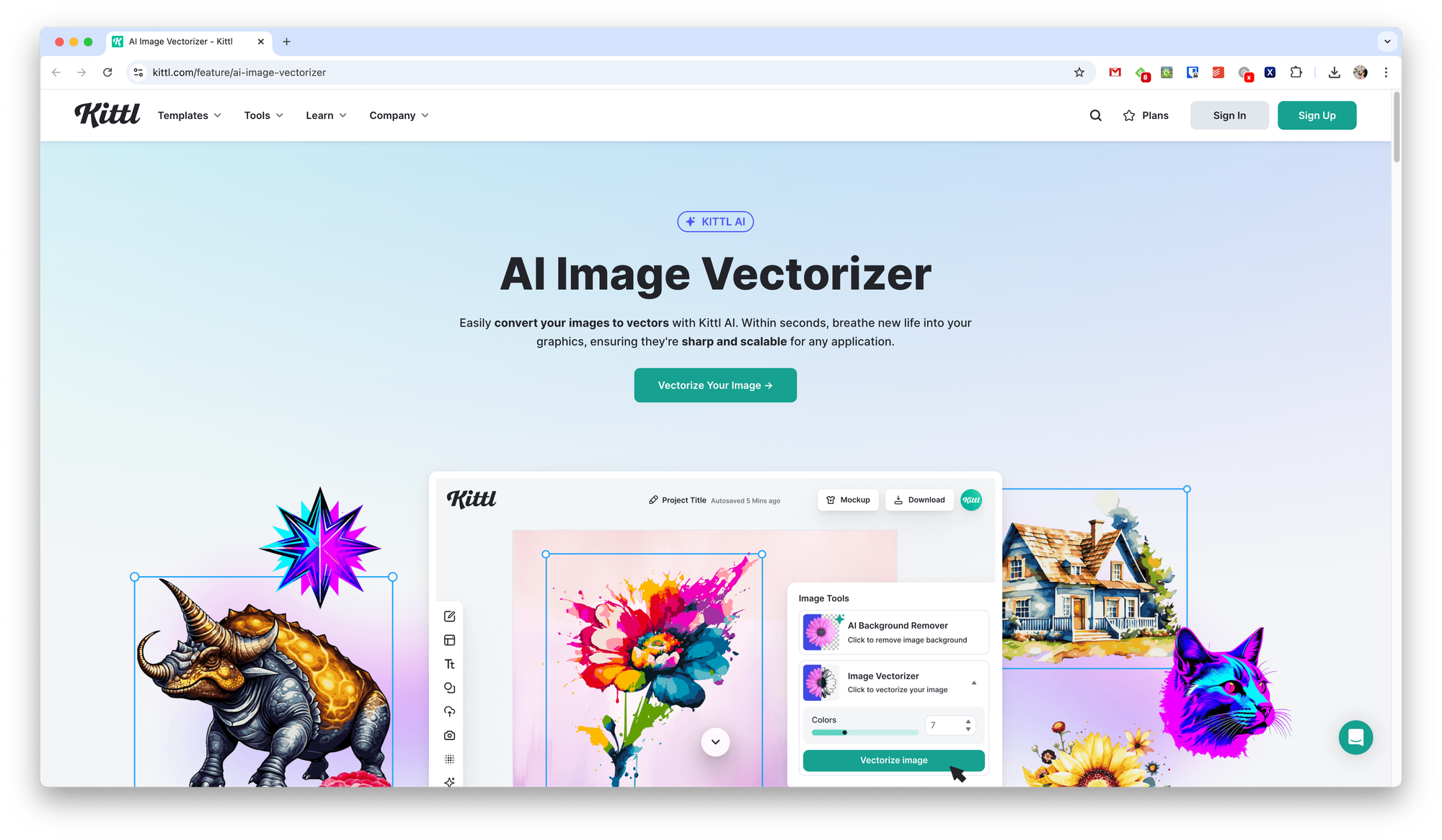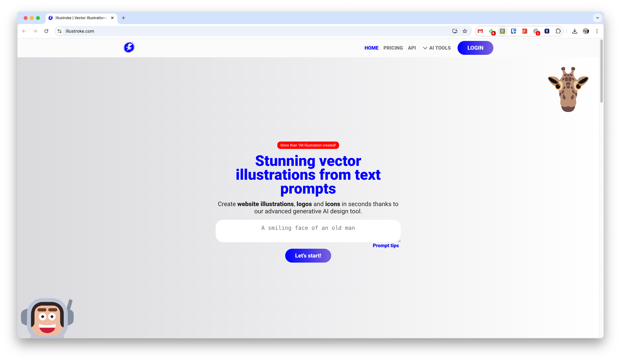 Платформа для создания графического дизайна с помощью искусственного интеллекта. Здесь вы найдёте целый ряд инструментов, в том числе и для генерации векторной графики из текста или преобразования png- или jpg-картинки в векторный формат.