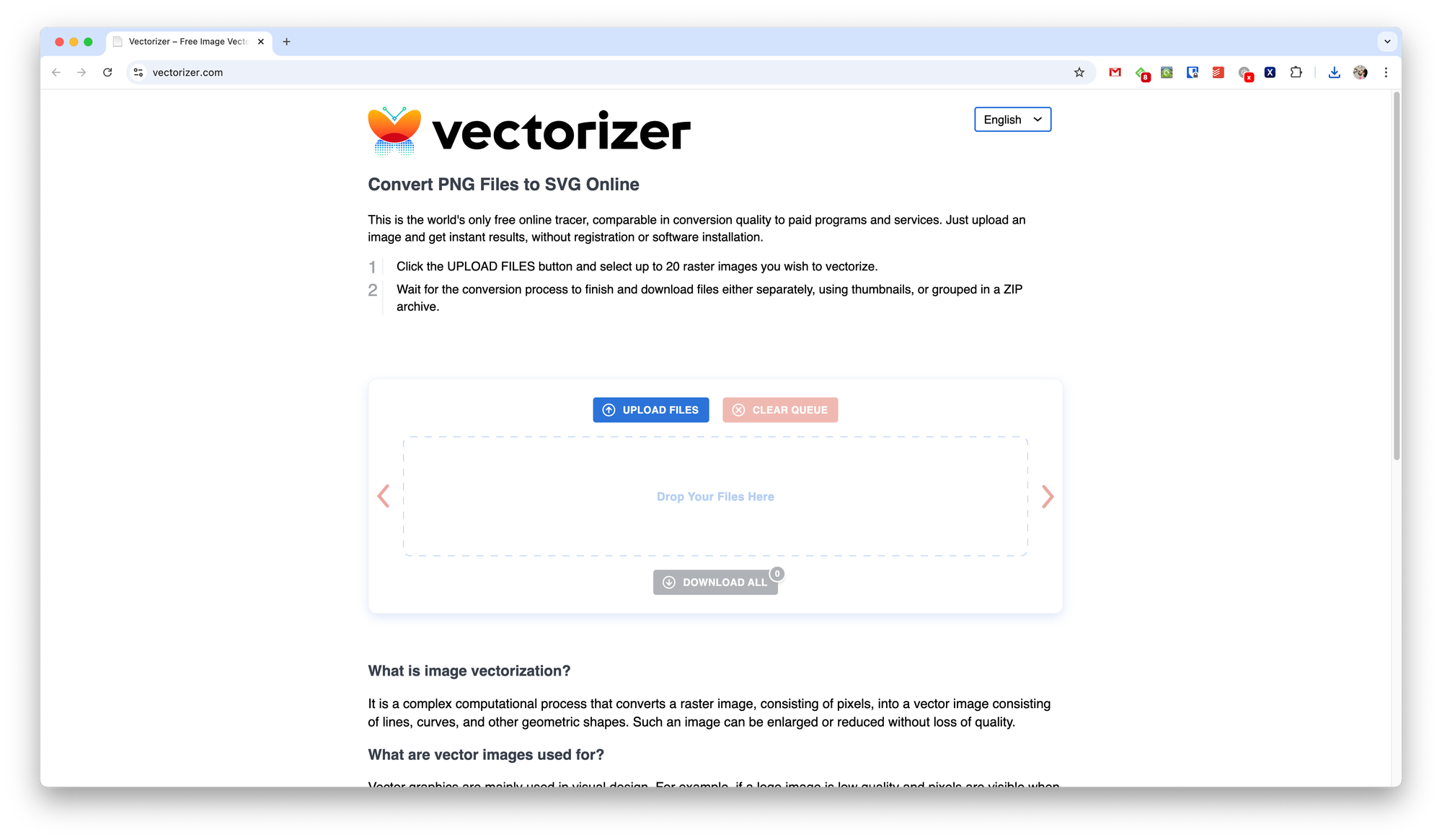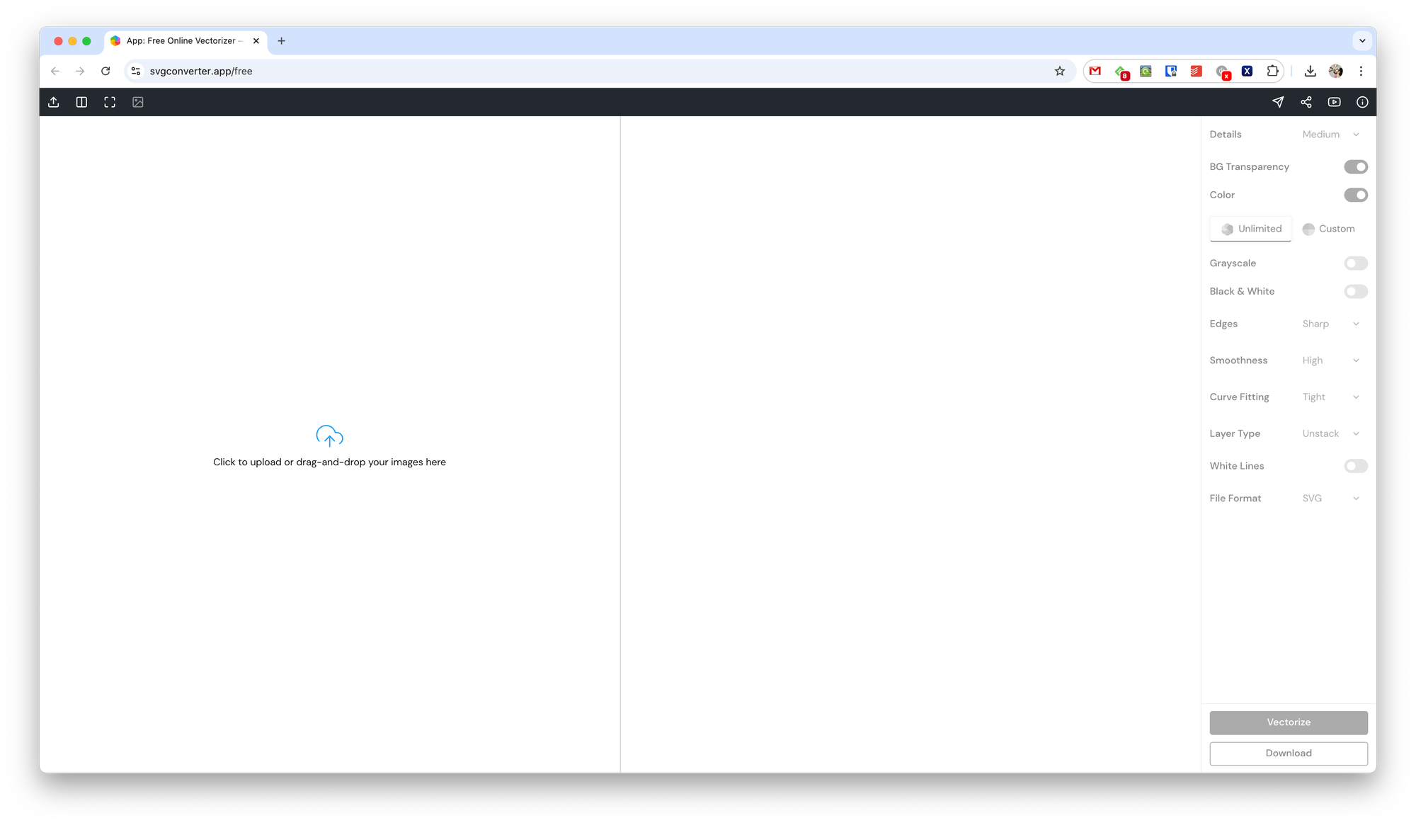 Бесплатный сервис с ИИ для векторизации изображений. Вы можете сколько угодно загрузить растровых и битовых изображений, а на выходе скачать векторную картинку в формате SVG, EPS, PDF, DXF или PNG.