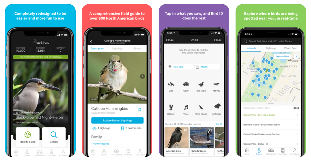 Audubon, кажется, вобрал в себя всё необходимое для орнитолога: локации птиц, распознавание, каталог. Приложение полубесплатное, так как придётся докупать заморочные функции. За минималистичный юзерфрендли дизайн интерфейса отдельный большой плюс!