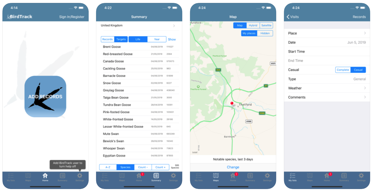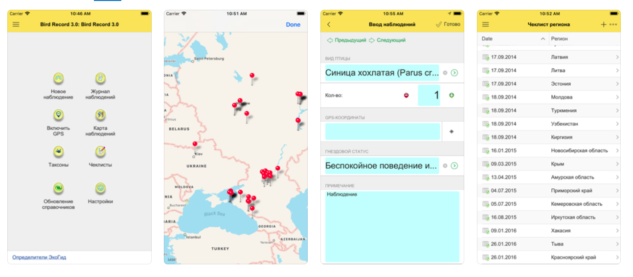 Российский разработчик. Стоит признать, что приложений для орнитологов на русском — единицы. Можно вести учёт птиц. Эти данные будут передаваться онлайн-базе Зоомузея МГУ для учёта птиц. Можно ещё посмотреть, какие птицы обитают рядом. Важно, что пометки можно делать офлайн, и потом, когда появится интернет, загрузить на базу. Остро не хватает картиночек. А так — на уровне. Бесплатно.