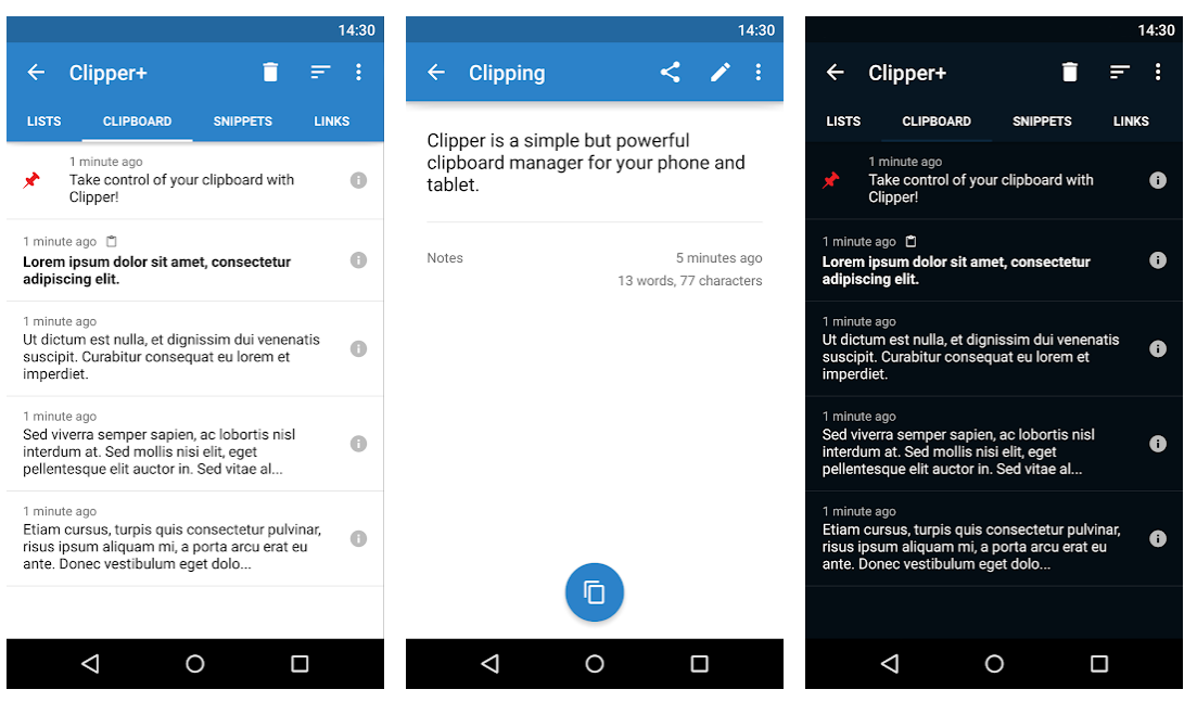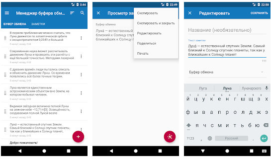 Clipo, наверное, — один из самых лучших менеджеров буфера обмена на Android. Здесь есть все нужные возможности и нет рекламы. Конечно, можно купить платную версию за 259 рублей, чтобы поддержать разработчиков.