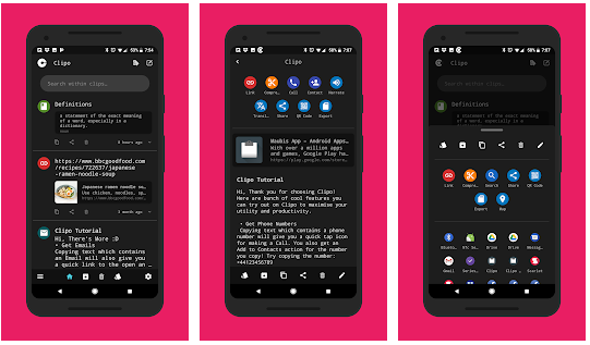 Clipo создаёт быстрые умные действия для скопированного текста и отображает их в виде оповещений или в списке приложений.