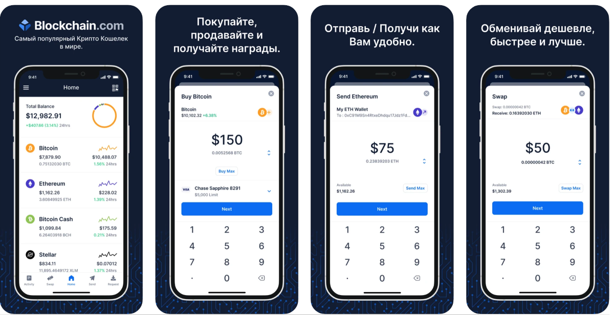 Тоже очень популярный способ разжиться криптовалютой. Плюс Blockchain.com в наличии простого в освоении приложения. Есть поддержка большого количества валют, которые можно хранить, покупать и обменивать. Есть возможность конвертации между монетами.