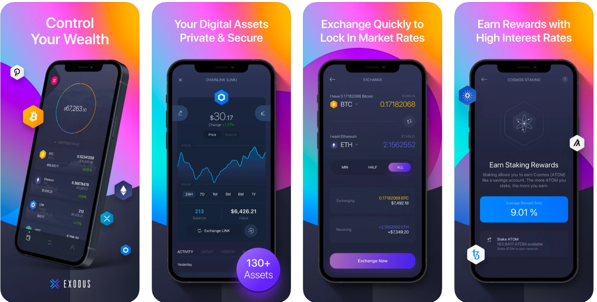 Один из лучших криптокошельков в индустрии. Exodus безопасный и простой для освоения кошелёк с поддержкой Bitcoin и многих других валют (более 125).
