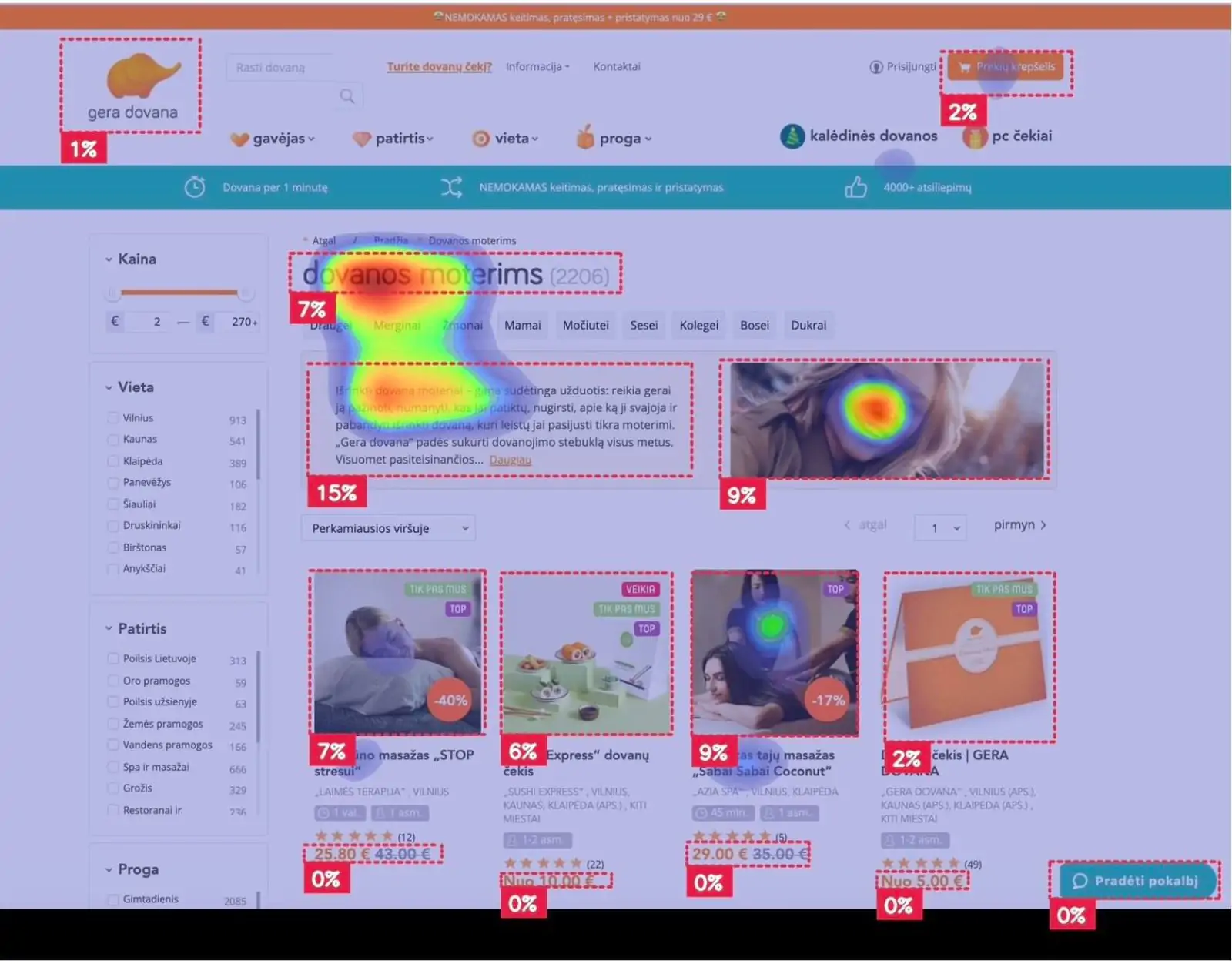 Карты этого сервиса помогут оптимизировать дизайн и вёрстку вашего сайта. Attention Insight создаёт карты внимания с применением AI (куда же без него), на которых в процентном соотношении отображаются действия с ключевыми элементами сайта.