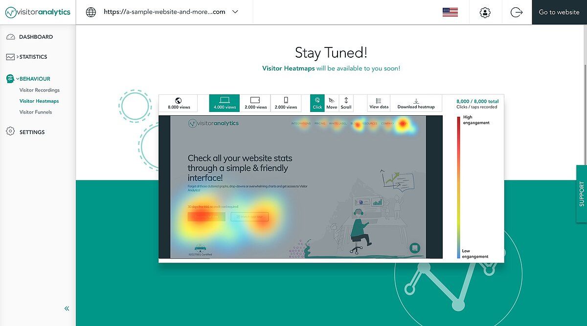 Этот сервис позиционирует себя как решение всё-в-одном для оптимизации конверсии. Следовательно, здесь есть тепловые карты для отслеживания кликов, скроллов и движений.