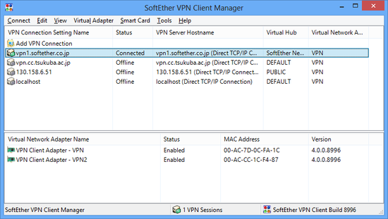 SoftEther — очень мощное программное обеспечение для создания VPN-сети, поддерживающее практически все операционные системы. Несмотря на то что интерфейс программы может показаться довольно простым, SoftEther полон полезных функций. SoftEther реализует туннелирование SSL-VPN по протоколу HTTPS и проход через брандмауэры.