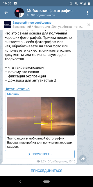 Всё о мобильной фотографии на одном канале: как снимать, в чем обрабатывать, какие приложения использовать. С пошаговыми уроками, заметками о фотографии и чатом для читателей канала.