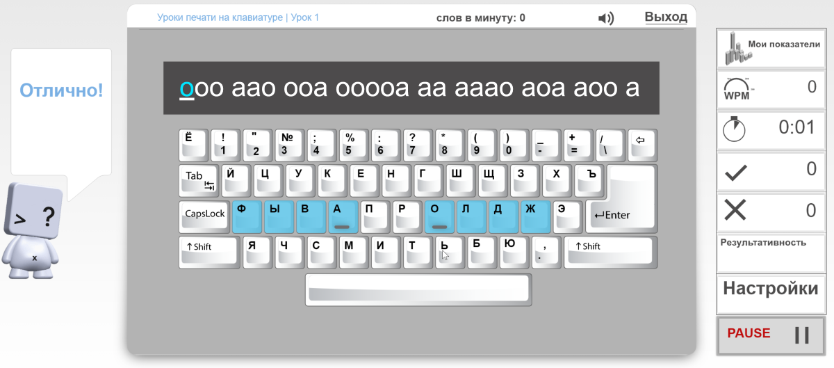 В процессе прохождения заданий не нужно исправлять опечатки, благодаря чему скорость набора не снижается. Но стоит отметить, что если при выполнении упражнения было сделано 5 и более опечаток, то выполнять задание придётся заново.
