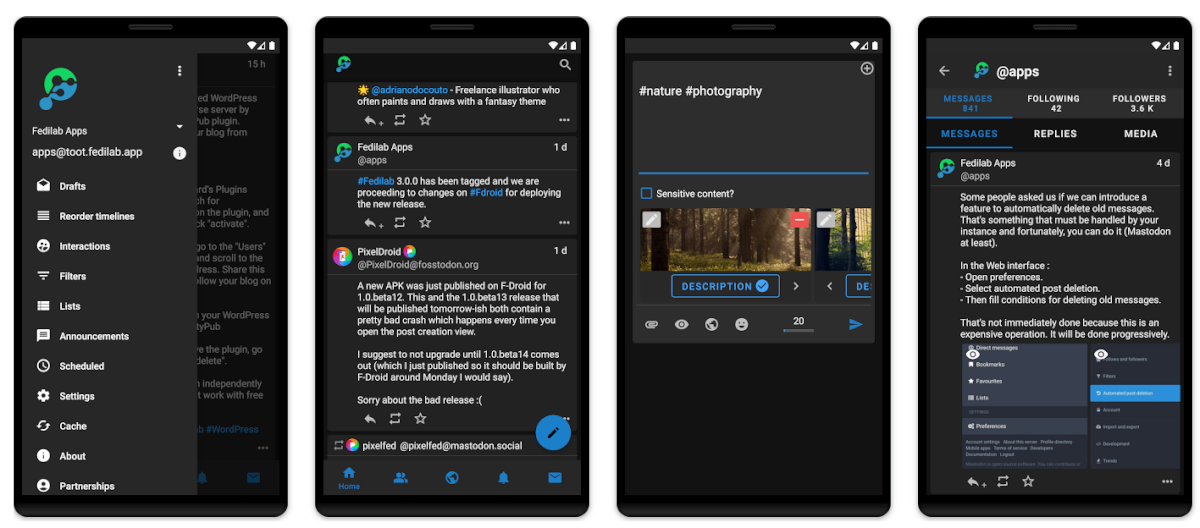 Один из самых популярных клиентов Mastodon в Play Store. Также работает с такими сервисами, как Pleroma, Pixelfed и Friendica. Вы сможете планировать посты, переводить текст на другие языки и разделять контент на отдельные временные шкалы (текст, картинки или видео).