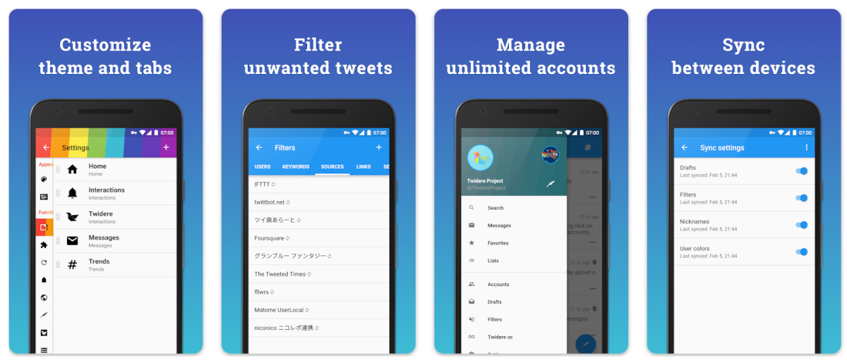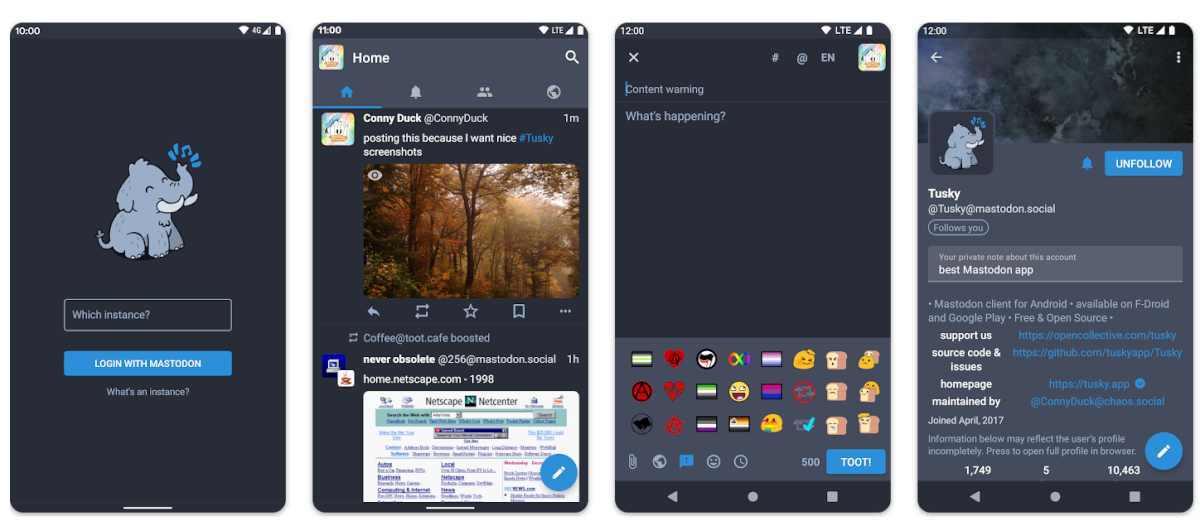 Как можно понять из названия, это клиент для Twitter и Mastodon. А ещё он работает со StatusNet и Fanfou. Вы сможете выкладывать посты длиной до 140 символов (да, прям как в старой версии Twitter), добавлять понравившиеся посты в избранное, настраивать по своему вкусу тему оформления, пользоваться различными фильтрами, включить режим разделения экрана на планшете и т.д.
