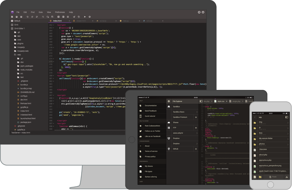 Codeanywhere поддерживает 72 языка, включая JavaScript, PHP, HTML и CSS, что позволяет разработчикам создавать практически любые приложения. Эта платформа используется некоторыми известными компаниями, такими как Accenture, CNN, Salesforce и Reuters.