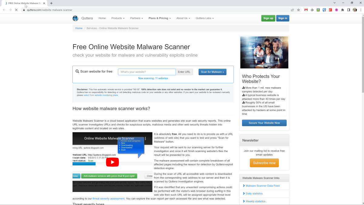 Не очень понятно, зачем существует этот сайт, ведь он использует движок Quttera для сканирования сайтов. По умолчанию отображается только информация о безопасности проверенной ссылки, но при желании можно просмотреть подробный отчёт.