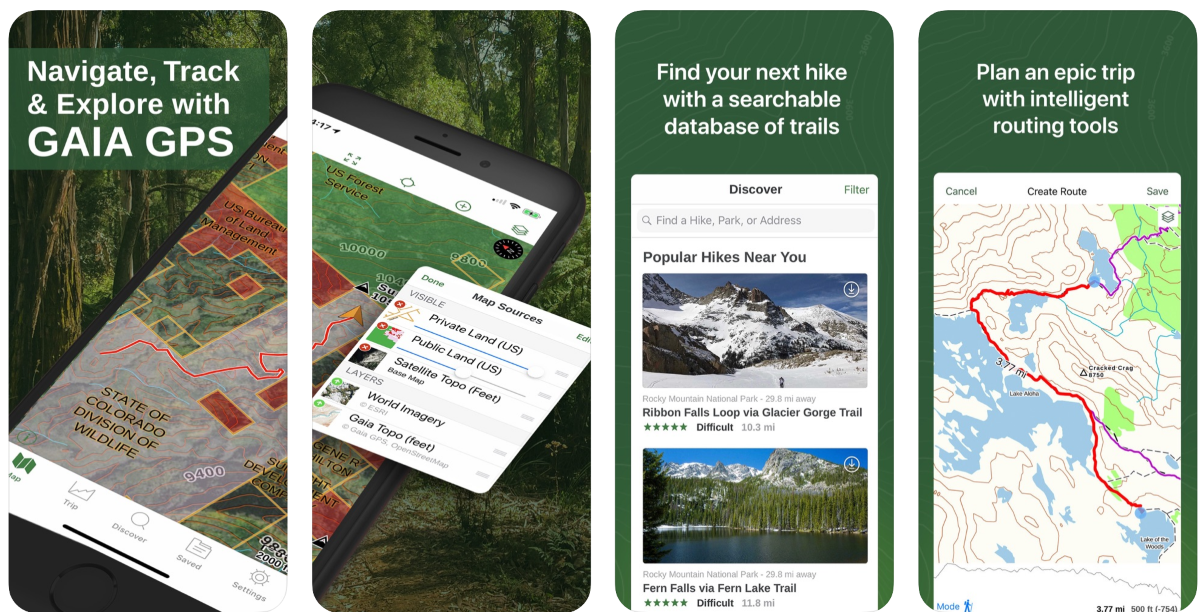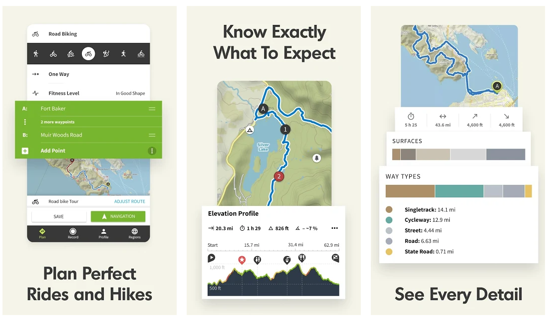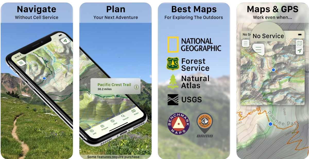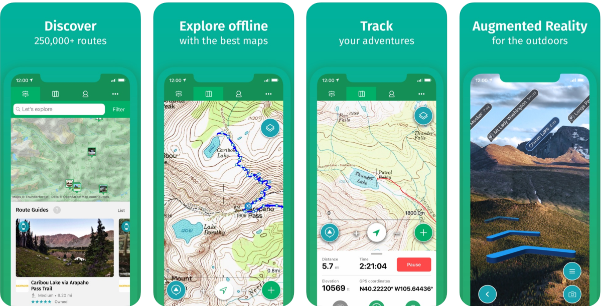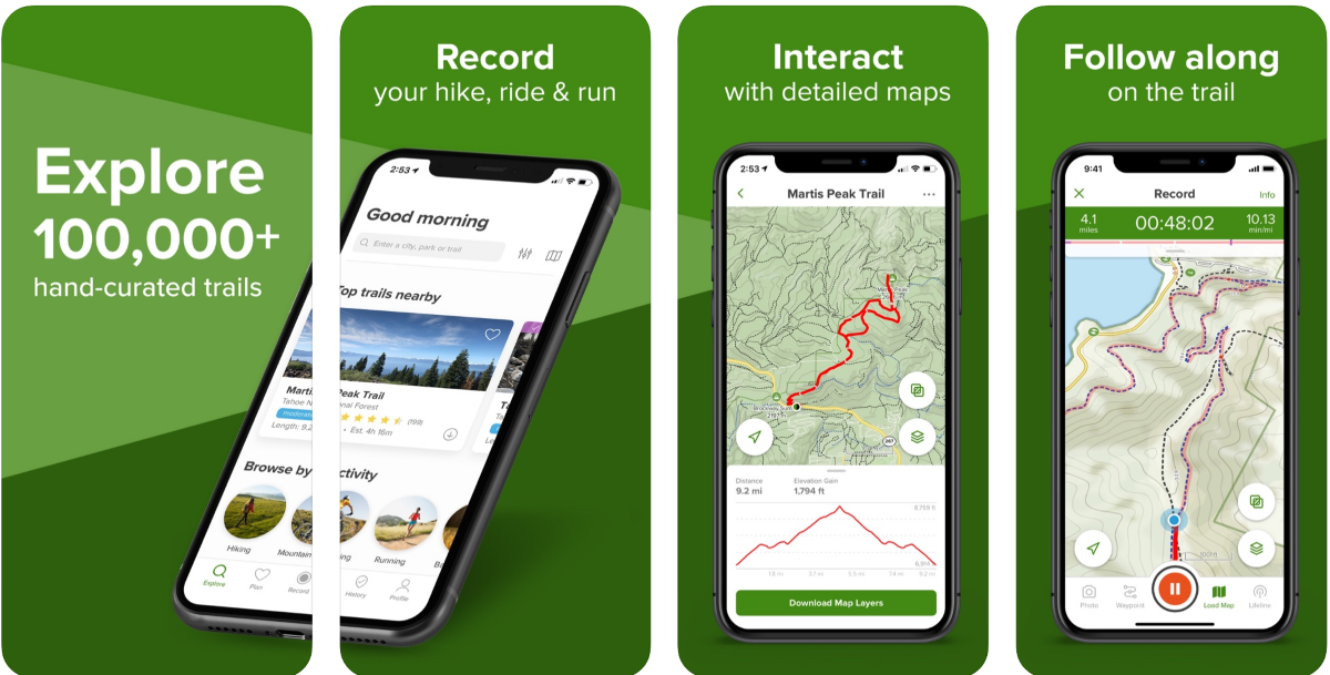 AllTrails предоставляет детально проработанные и отобранные вручную карты для походов. Для всех карт доступны отзывы, фотографии из огромного сообщества приложения. В базе доступно более 100 000 маршрутов с фильтрацией по необходимым параметрам.