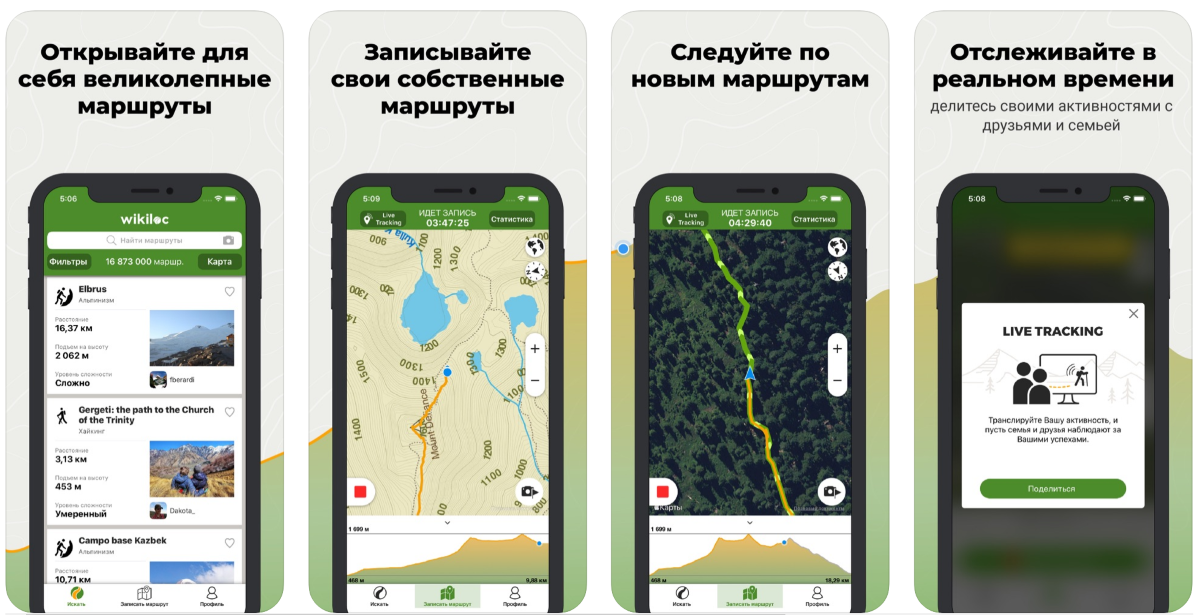 Можно создавать и отслеживать свои маршруты.