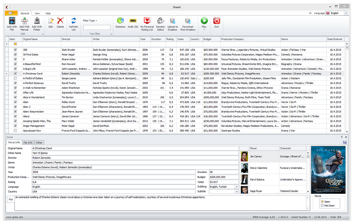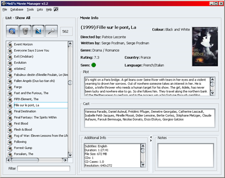 Одно из самых лучших приложений в данной категории. Есть версии для Windows, macOS и даже мобильников. К информации о фильме можно добавить название, жанр, год, синопсис, афишу, актёров, режиссёров и многое-многое другое.