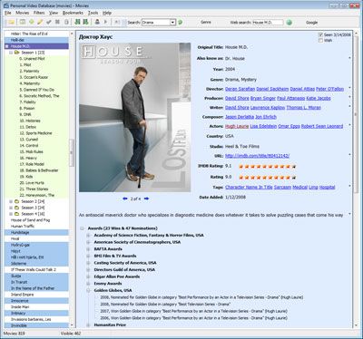 Как следует из названия, это приложение создано для ведения личной базы данных фильмов. Кроме стандартных полей, к фильму можно добавить слоган, комментарий, видеофайл и многое другое. Также есть поддержка сериалов и телевизионных шоу.