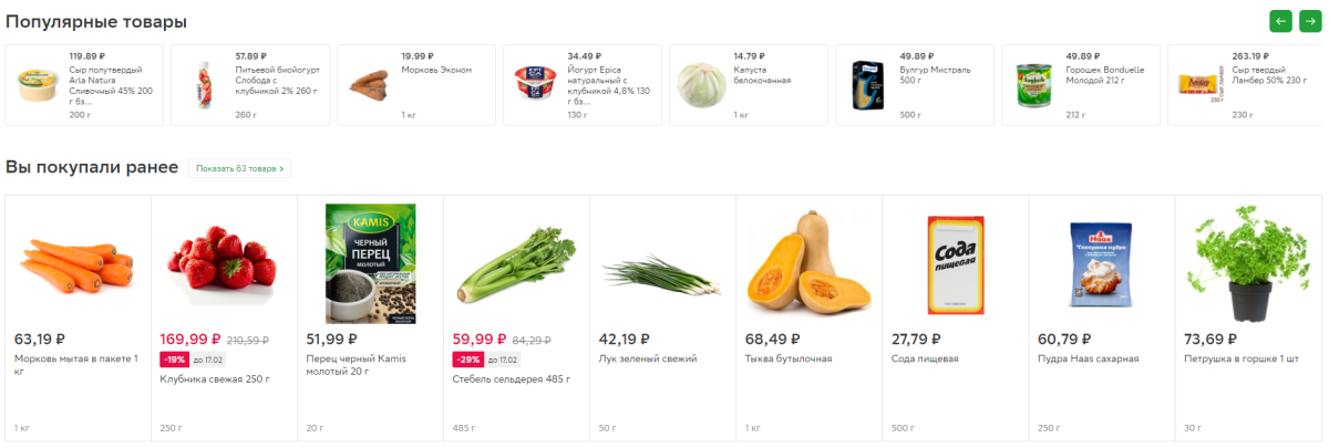 Несомненный минус сервиса — регионы доставки. Если вы живёте в одной из двух столиц России, вы сможете получить бесплатную доставку из гипермаркетов О'КЕЙ. Ассортимент насчитывает более 20 000 позиций свежих продуктов по выгодным ценам. Возможна доставка в день заказа.