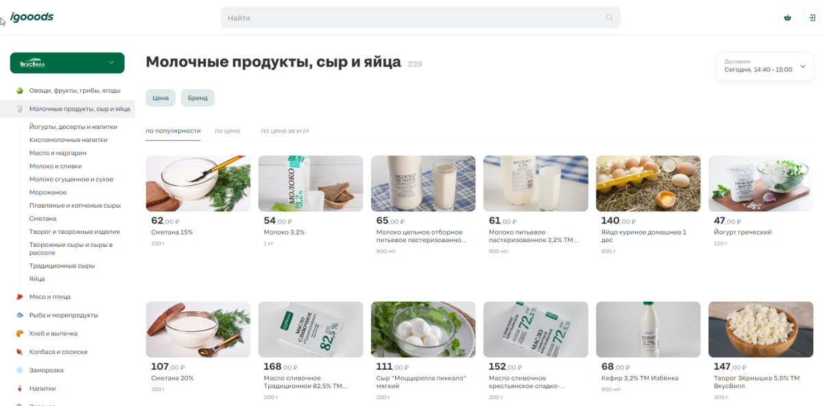 Как и СберМаркет, igoods является маркетплейсом, но здесь для заказа доступно семь магазинов: Metro, Лента, Prisma, Super Babylon, Вкусвилл, Карусель и Ашан.
