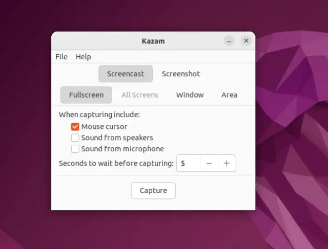 Установить утилиту можно из терминала с помощью команды: sudo apt install kazam.