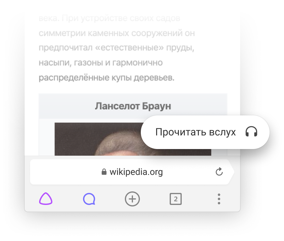 Чтобы Алиса озвучила всю страницу, нужно нажать кнопку с наушниками: она появляется на страницах, где Браузер умеет включать режим чтения. На компьютере можно обойтись без кнопки и просто сказать: «Слушай, Алиса, прочитай эту страницу».