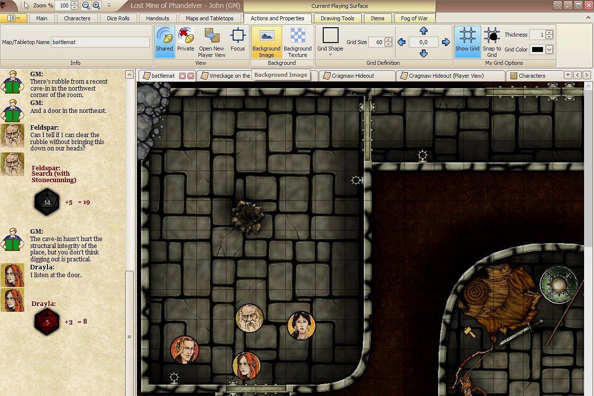 Десктопная софтина для эмуляции физического игрового стола. Поддерживает большинство известных ролевых игр. Вы можете начать как GM (гейм-мастер) или игрок. У мастера есть возможность сохранять текущий сеанс. Также можно поиграться с затенением (скрыть какие-то участки поля от остальных игроков) и другими настройками.