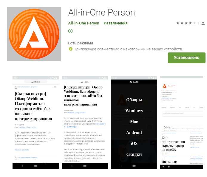 Мы выпустили первую версию Android-приложения для чтения твоего любимого сайта All-in-One Person.