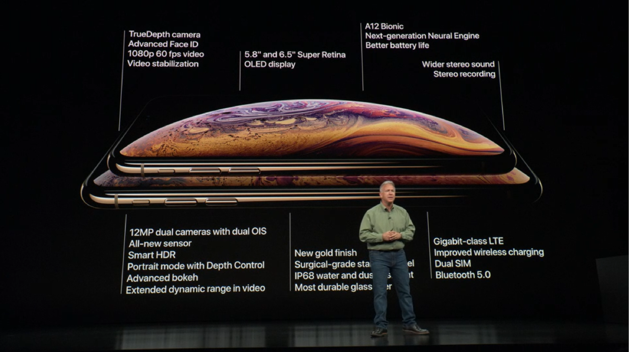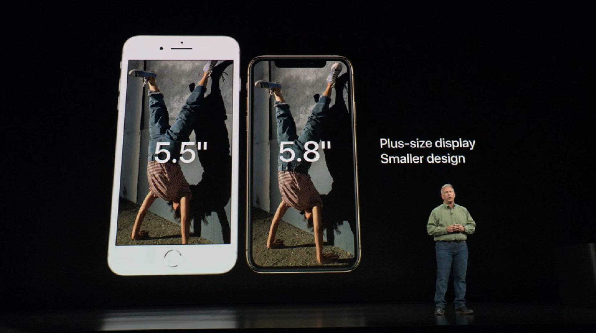 Телефон стал ещё более защищён от воды и пыли (стандарт IP68). Экран Super Retina 5,8 дюйма. Разрешение — 2436 х 1125. 2,7 млн пикселей, т.е. 458 ppi.