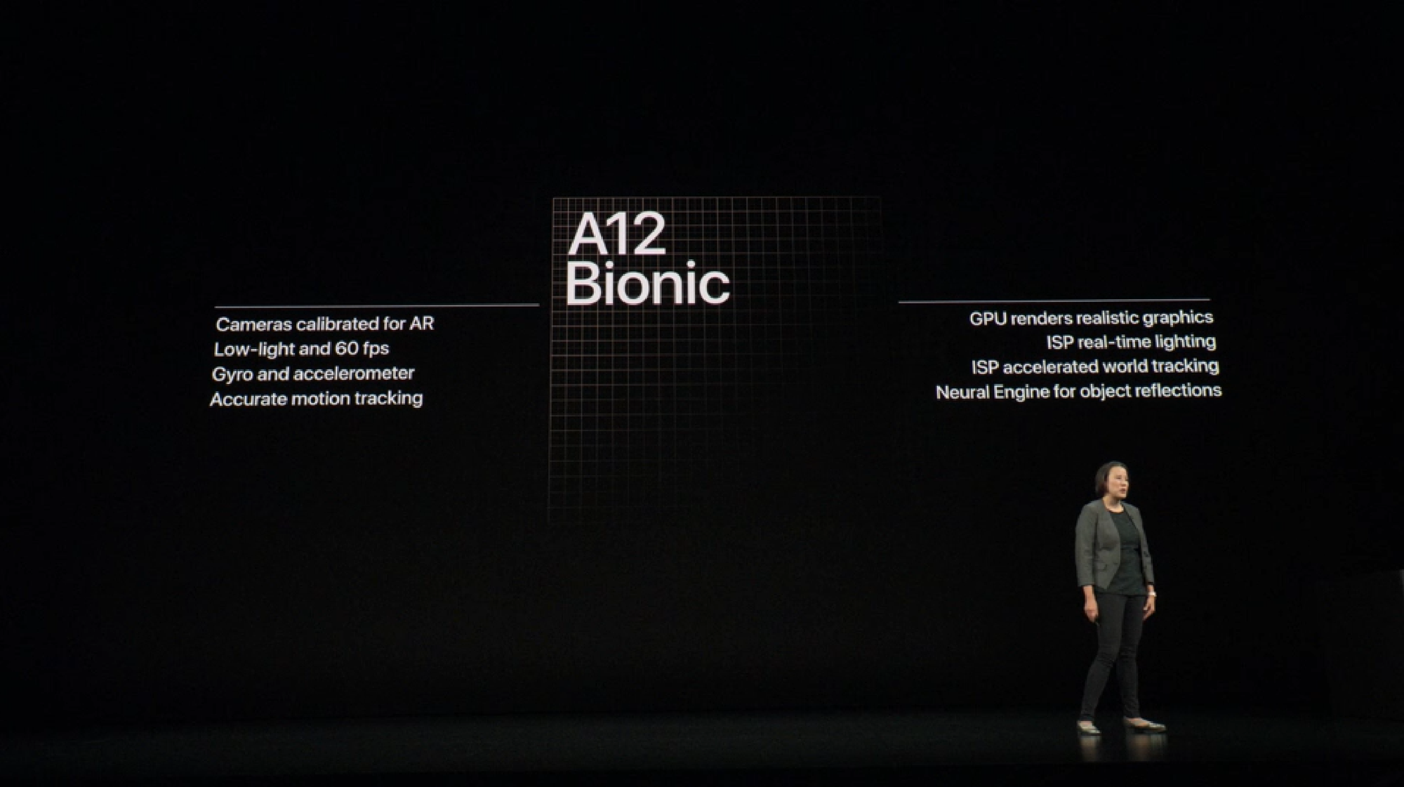 Чип A12 Bionic содержит в себе поддержку обработки данных при помощи нейросетей и 8-ми ядер, специально отведённых под это дело, 4-ёх ядерный CPU и 6-ти ядерный GPU. Новый процессор обрабатывает 5 триллионов операций в секунду.