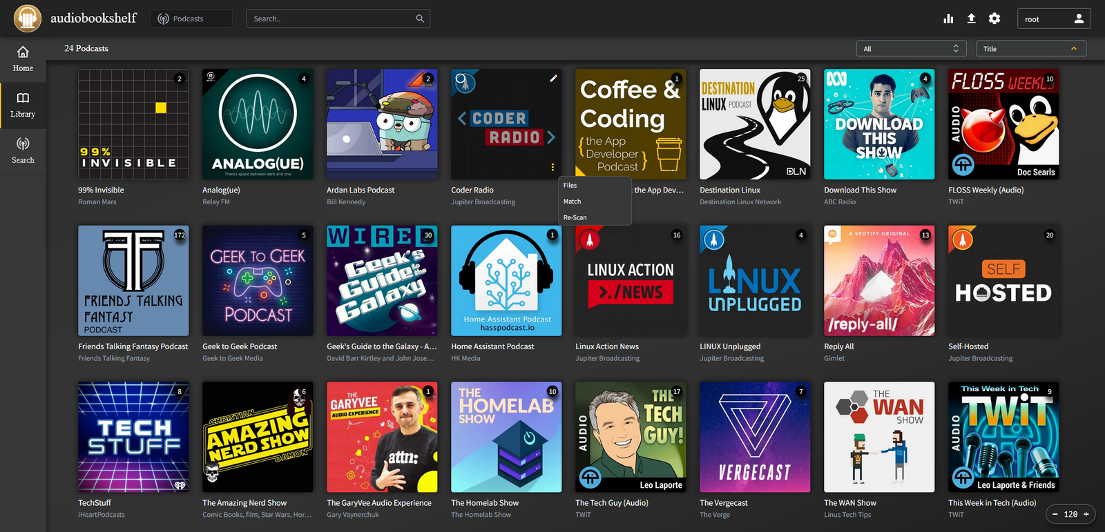 Вы можете загружать аудиокниги как по одной штуке, так и целыми папками. Что касается подкастов, то Audiobookshelf позволяет не только управлять своей коллекцией, но и подписываться на новые выпуски.