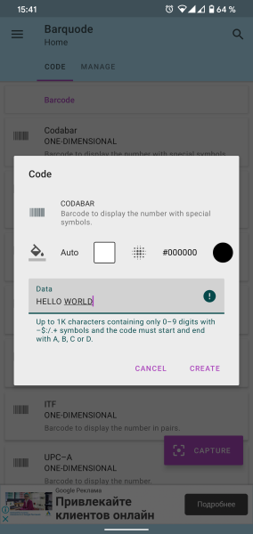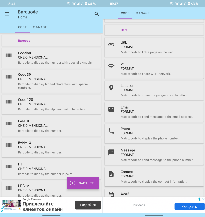 Если прочитать и создать QR-код худо-бедно может каждый, то как быть с остальными? Для этого есть Android-приложение Barquode.