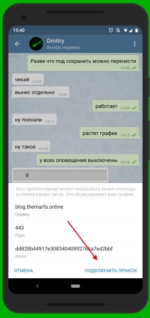Просто кликни по этой ссылке с любого устройства, где установлен Telegram. И разреши подключение нажатием кнопки «Подключить прокси».
