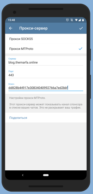 Кроме этого, наш прокси работает через протокол TLS, что ещё больше снижает вероятность его блокировки.
