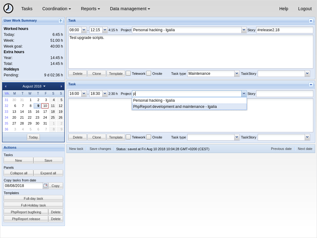 Это GTK-решение для учёта рабочего времени, которое также позволяет создавать отчёты в виде простого текста и HTML.