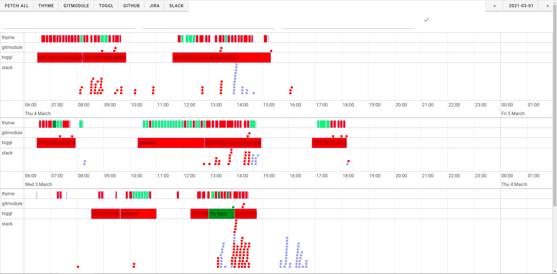 Позволяет вести учёт времени на простом таймлайне. Поддерживается интеграция с Thyme, Git, Slack, Toggl, Clockify, Jira, Taiga и GitHub.