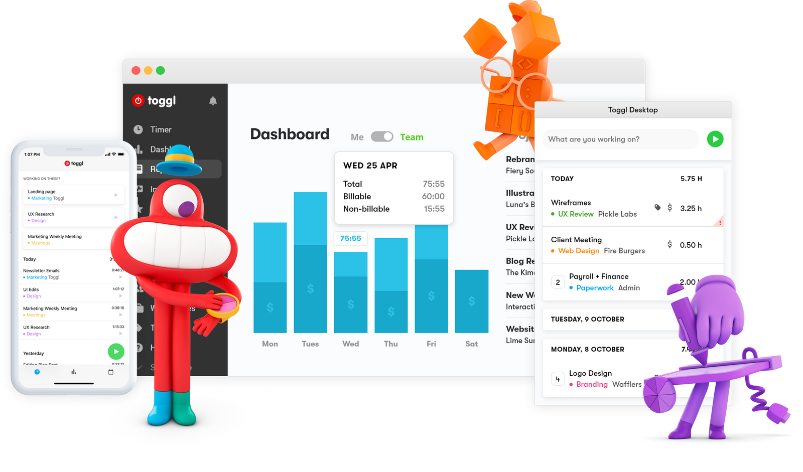 Подходит для учёта рабочего времени. Вы можете использовать его как в одиночку, так и вместе с командой. Можно формировать отчёты о проделанной работе, выставлять счета, запускать несколько таймеров, подключать различные плагины и делать многое другое.