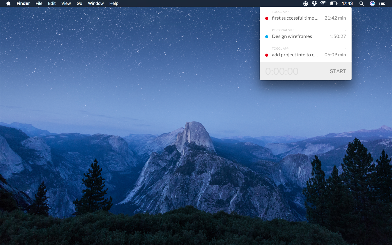 Простое приложение, которое работает с Toggl и позволяет отслеживать время из менюбара. Создано оно с помощью Electron, React, Webpack, Babel, Figma и toggl api.