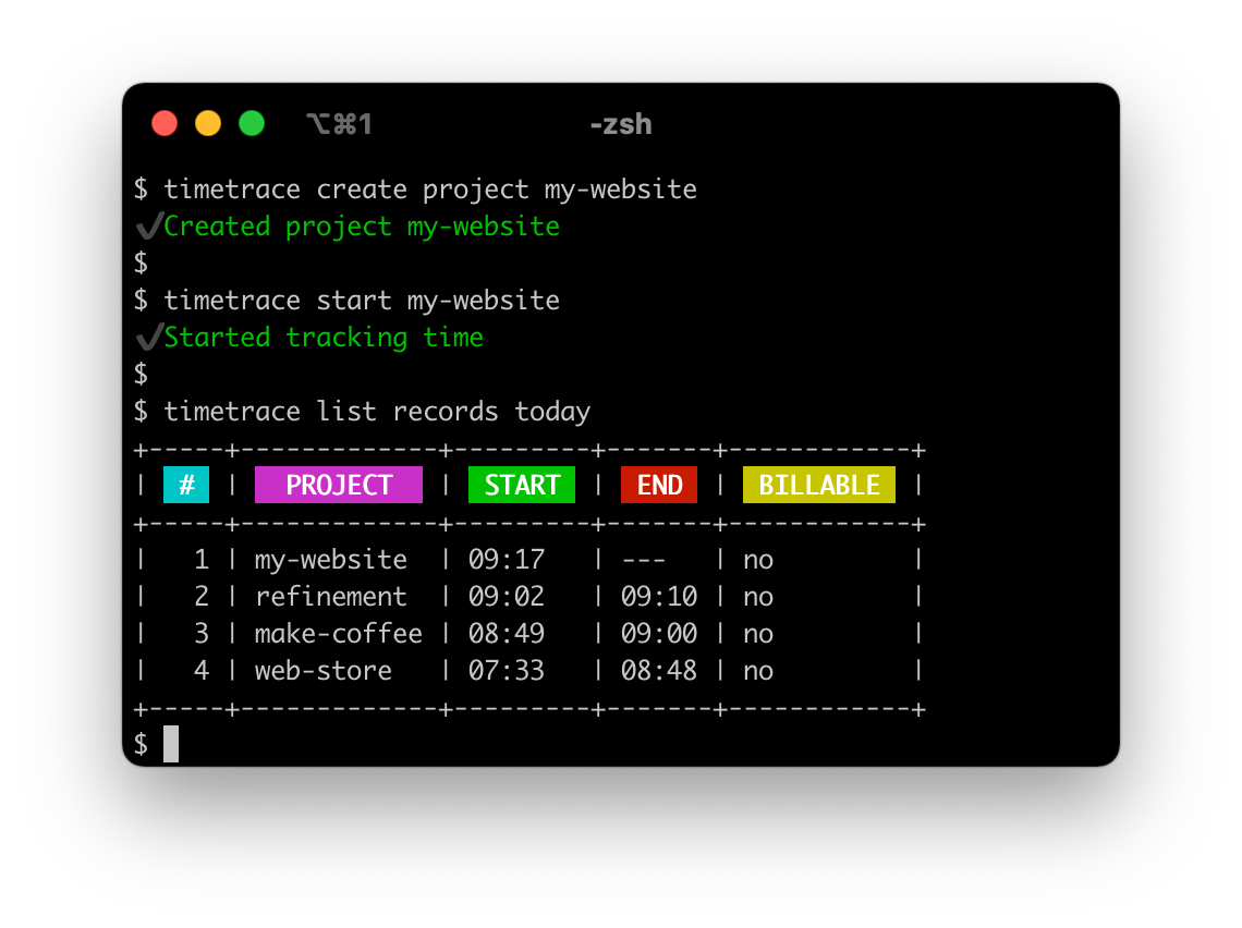Простой тайм-трекер для тех, кому удобно отслеживать время работы над проектами из командной строки.