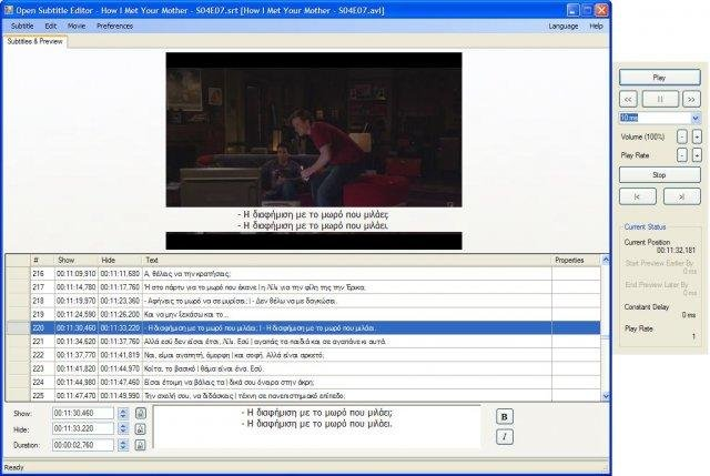 Есть возможность быстро найти и заменить определённый текст в субтитрах, синхронизировать субтитры с исходным видео, предварительно посмотреть, как субтитры смотрятся на видео.