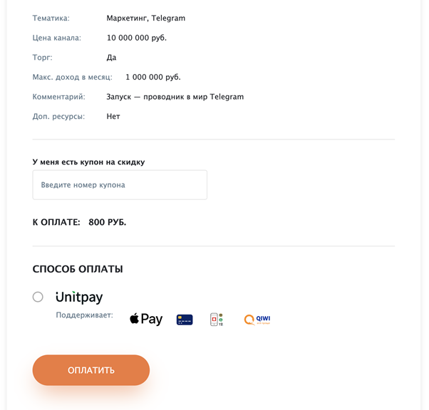 Проверяем «Предпросмотр» канала для покупателей, оплачиваем размещение.