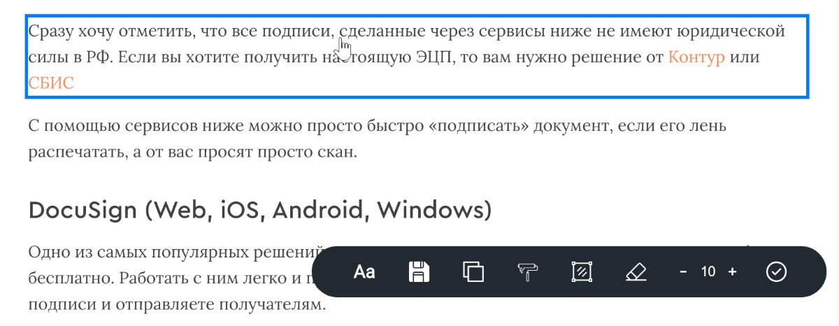 Добавить размытие к любой области страницы легко. Выберите нужную опцию на панели инструментов и просто кликнете или выделите область. К ней тут же будет применён эффект размытия.