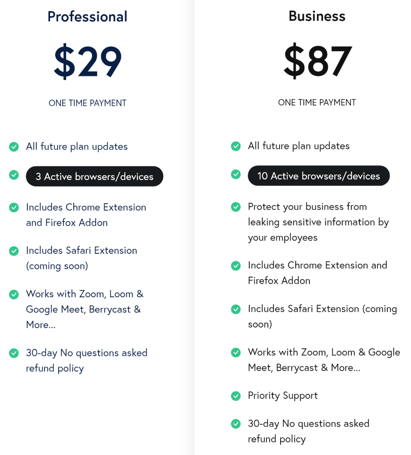 Как я писал выше, Blurweb App не будет работать без ввода лицензионного ключа. Стоимость разблокировки составляет $29 для профессионального плана и $87 для бизнес плана.