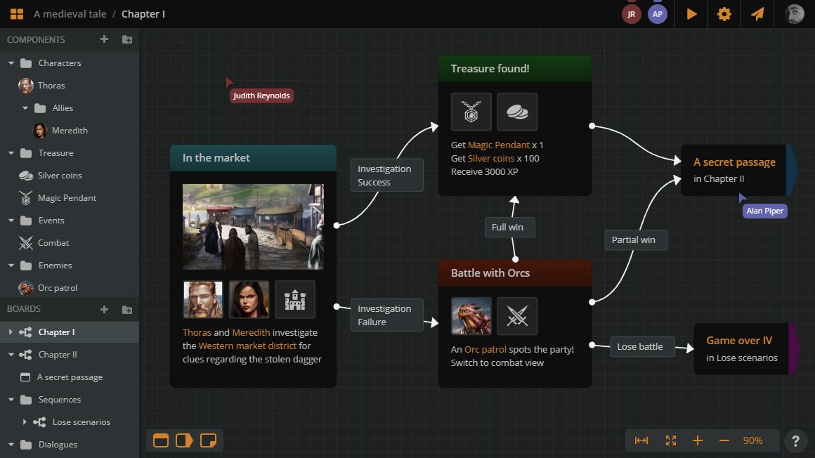 Подойдёт для создания и организации интерактивных проектов и игровых сценариев. Он предоставляет возможности для разработки графических диаграмм, создания прототипов и структурирования историй и игровых проектов.