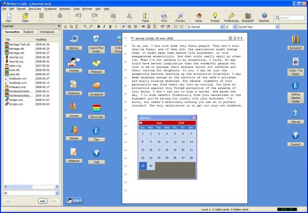 Поможет в процессе написания и организации литературных произведений. Здесь вы найдёте все необходимые инструменты, которые помогают авторам вдохновляться, планировать, писать и редактировать свои произведения.