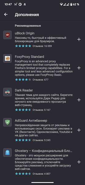 Также Ceno поддерживает расширения, которые повышают приватность. В списке можно найти: uBlock Origin, FoxyProxy, AdGuard, Ghostery и многое другое.