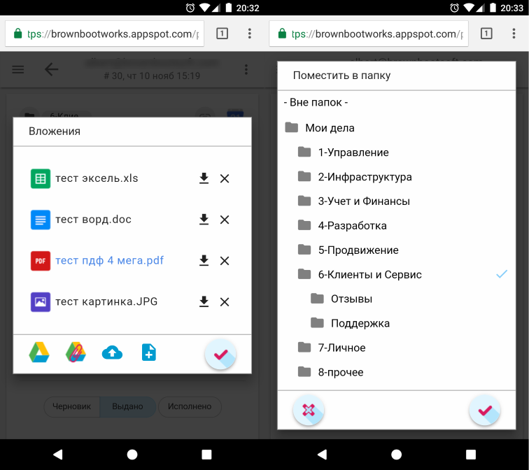 Можно делать вложения как в виде копий файлов (из облака и с устройства), так и в виде ссылок на объекты, хранимые в другом месте на Google Диск. Каждый метод имеет свои достоинства. Но работа с вложениями файлов непосредственно в Хранилище сервиса может оказаться проще и удобнее. В частности потому, что сервис автоматически назначает права участникам задания на вложенный файл. Исполнители получают права — Редактор. Пользователи, добавленные для ознакомления, получают права — Просмотр. Права на объекты по вложенным ссылкам сервис никогда не меняет. Их нужно создавать вручную.