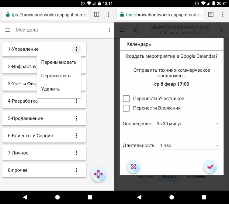 Вы получаете ещё одно приложение в облачной рабочей среде, которое связано с остальными, но предоставляет свои функции по управлению задачами, делами, процессами и проектами. Материальный дизайн сервиса покажется привычным для пользователей приложений Google или приложений в мобильной операционной системе Android.
